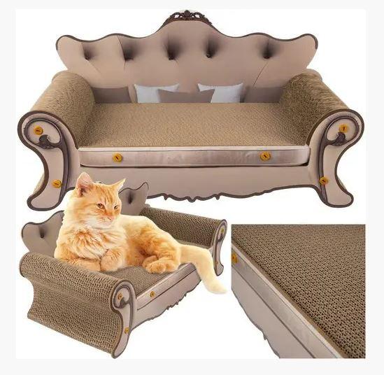 - МІЦНІ ТА ДОВГОВІЧНІ МАТЕРІАЛИ - Когтеточка виготовлена з пошаровано пресованого картону, що має виняткову міцність , що гарантує тривале використання Гофрований картон є Ідеально підходить для заточування кігтів , задоволення потреб вашої кішки в подряпинах і захисту ваших домашніх меблів від пошкоджень. Задня та передня частина ліжка вони імітують старовинний диван, вони виготовлені з високоякісної плити МДФ , що надає всьому елегантного вигляду та забезпечує міцність конструкції.
